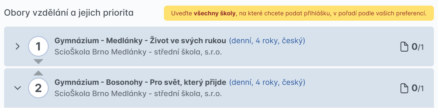 Můžeš si samozřejmě dát přihlášku jen na jednu ze škol. Stejně tak i na obě. Ale pozor! Na prioritě záleží! :)