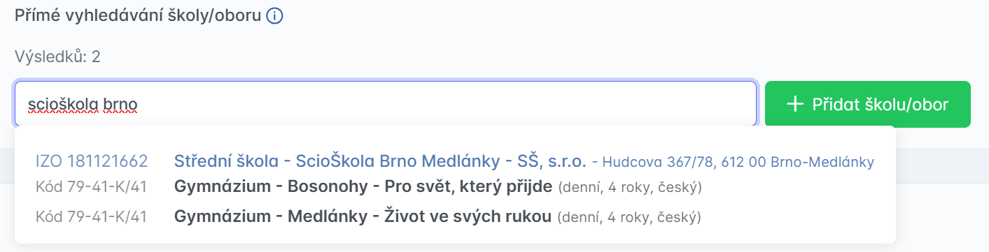 Nově si totiž můžeš v DiPSy dohledat pod názvem naší školy hned dva podobory: